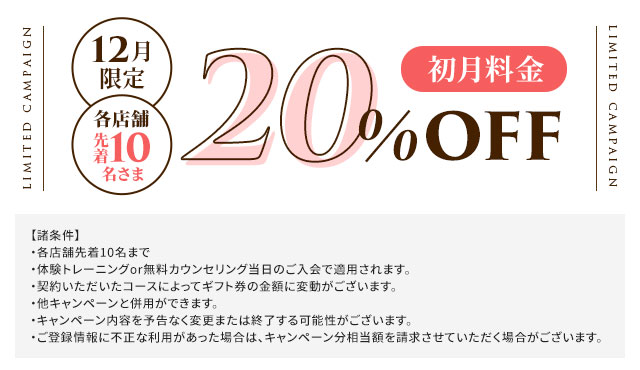 ということで、今回は「年内に生活習慣を正してダイエットやボディメイクのきっかけを作りたい!」とお考えの皆様に向けてお得なキャンペーンのお知らせです!