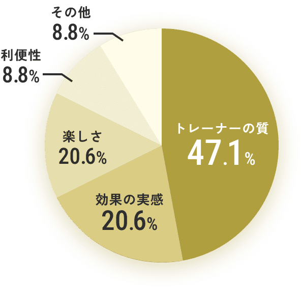 目的に合わせたメニューと丁寧なフォーム指導のおかげで、効果を実感しながら無理なく継続できています。