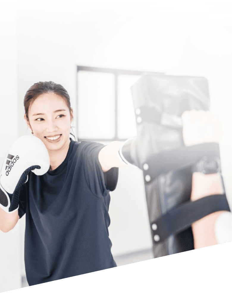 セッション時間の中でボクササイズを行うこともでき、脂肪燃焼効果はもちろん、インナーマッスルを鍛える運動としても非常に効果的です。